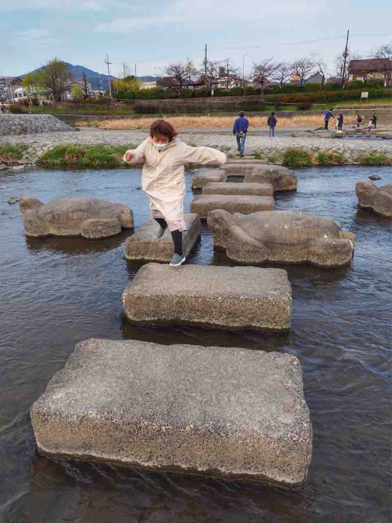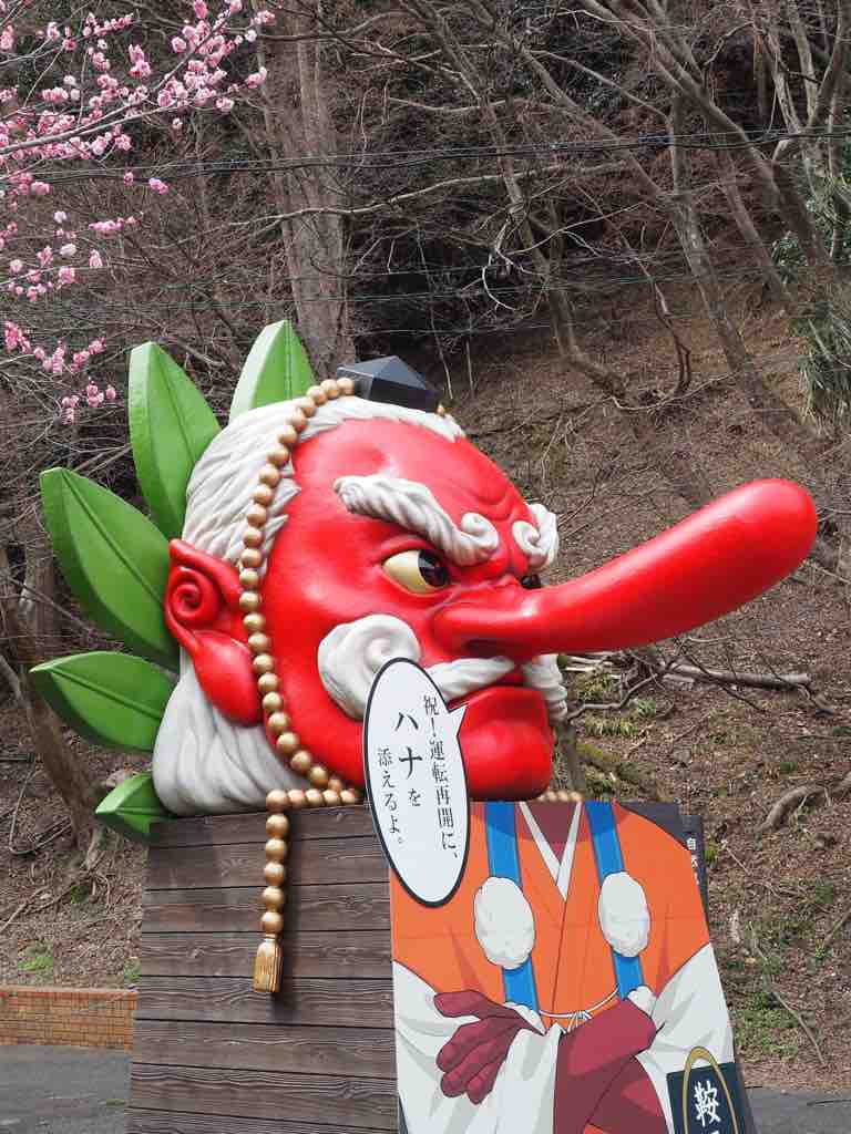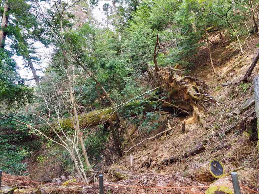 叡山電鉄でも目にしましたが、台風の被害で、大木がたくさん倒れていました。山が崩れかけています。復興のためにTシャツや手拭いなどを販売していました。手拭いを入手しました。