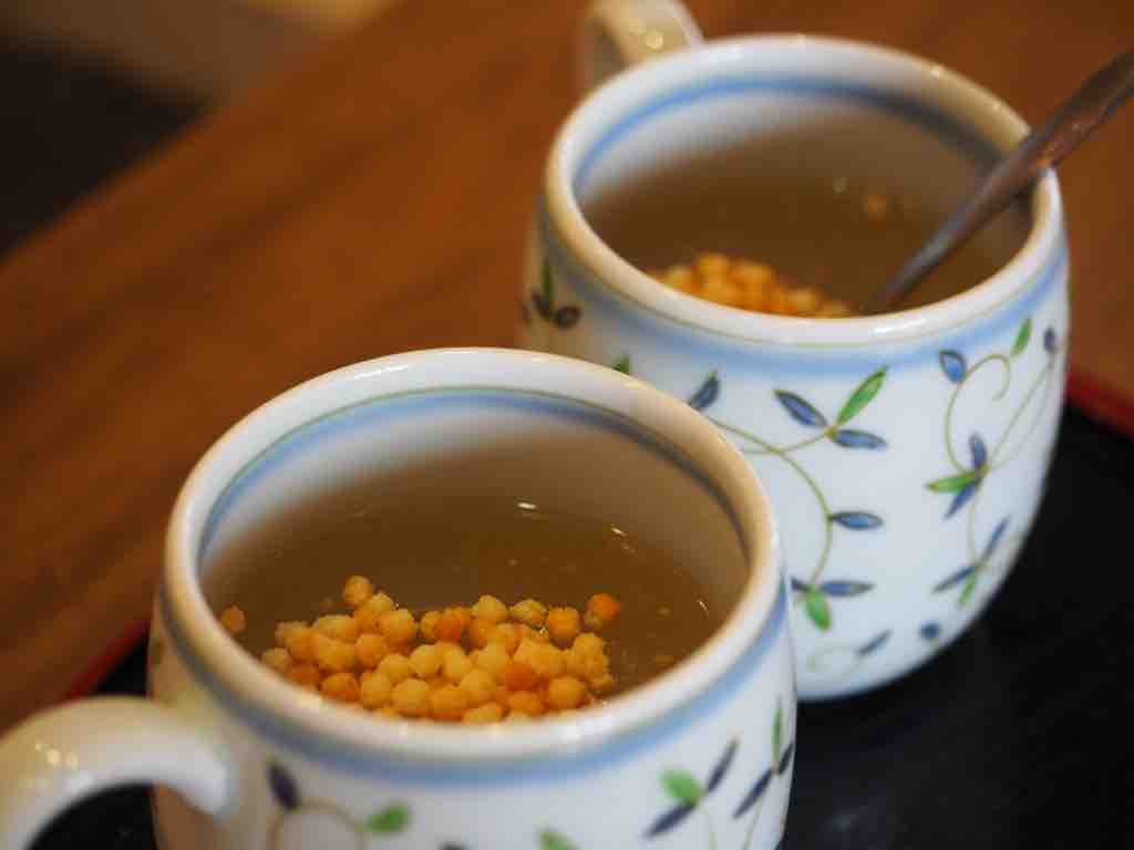 休憩所。炭で沸かした湯でくず湯をいただきました。