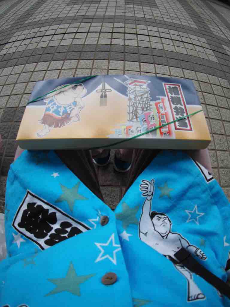 照強関の反物でつくっていただいたアロハシャツですが、数人に「素敵なシャツ!」と声をかけていただきました。ゆかりんさんありがとうございます。大阪場所でも着ましたが、グッズ売場のスタッフの方々が集まって褒めてくれて、思わず、照強関のバッチを買ってしまいました。