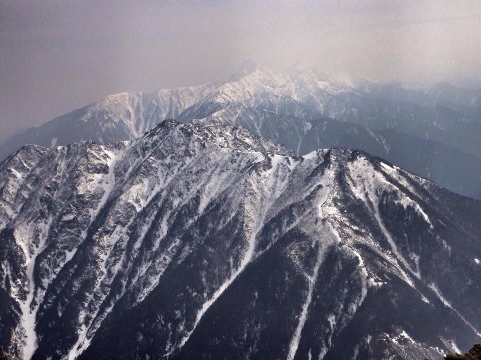 北岳以南の稜線。これも見たかった。いつか歩きたいです。春の霞。