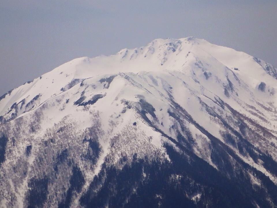 山頂からのぞむ仙丈ヶ岳のカールが美しい。2012年の秋に歩きましたが、雪の仙丈ヶ岳を歩きたいと思っていました。次の機会に…。
