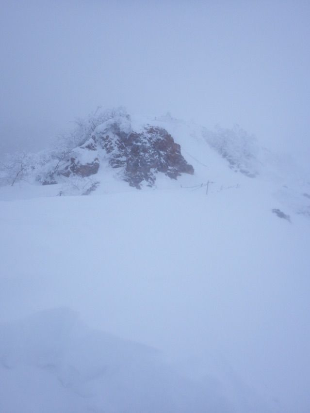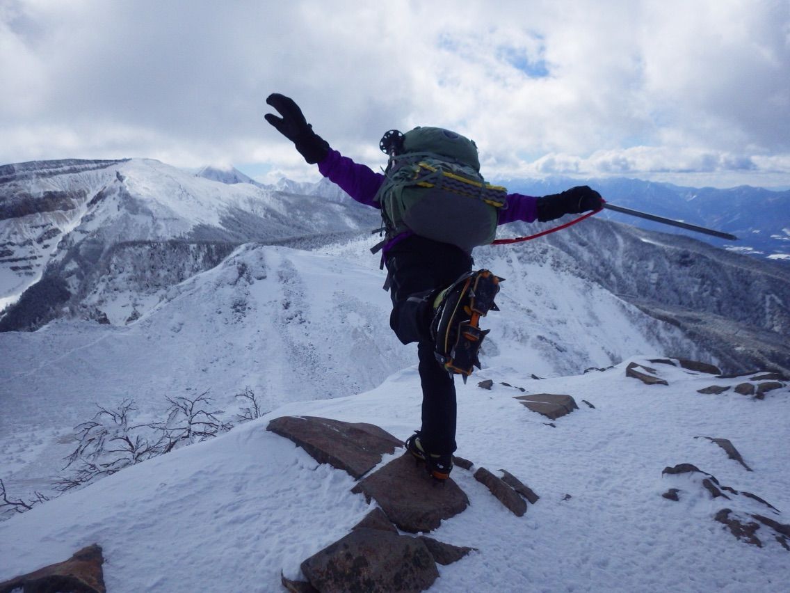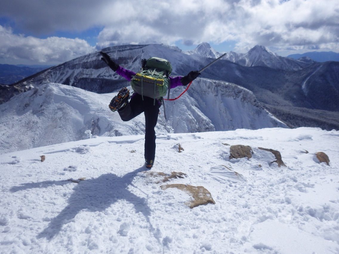 東天狗岳山頂で妹の「ぼくちんとべちゃうかも〜」。