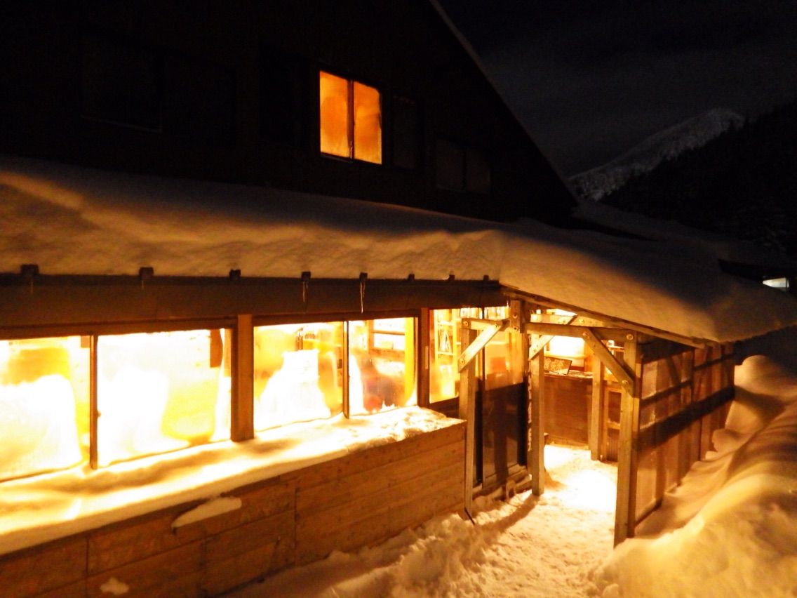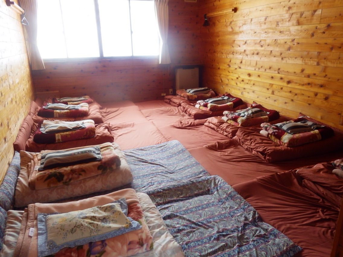 赤岳鉱泉に戻り、のんびりお茶を飲みながら昼ごはんを食べる。昨夜、過ごした個室には、びっしり布団が敷かれている。