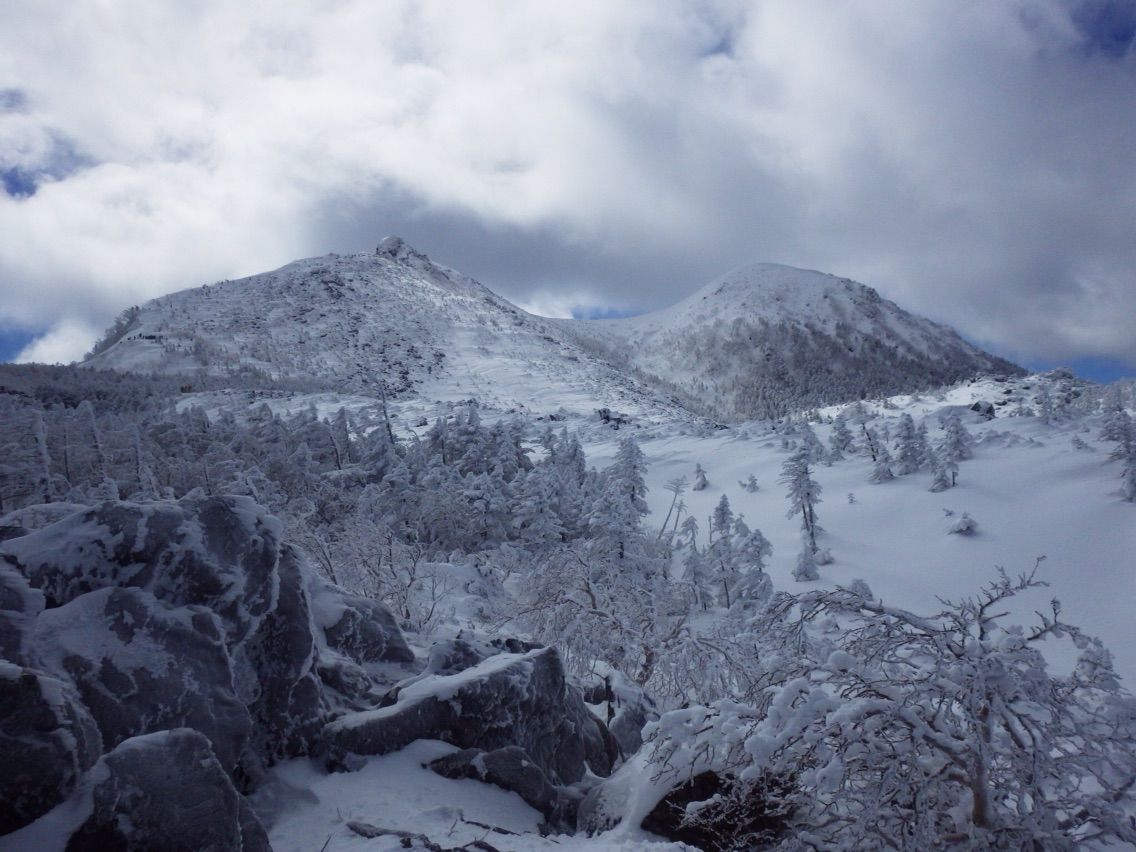 天狗の奥庭から望む東西天狗岳と凍っているすりばち池。ここの空気感が好きです。