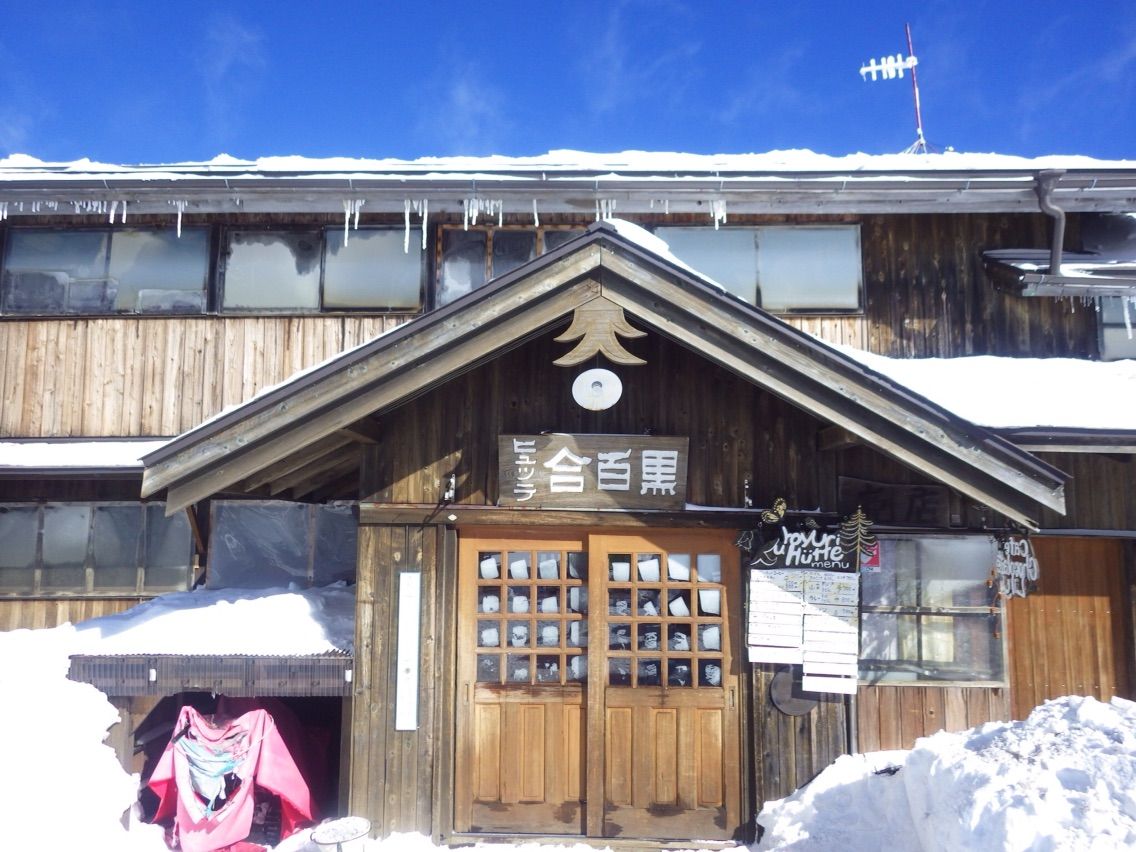 下山していると、視界が少しよくなり、行者小屋が見える。