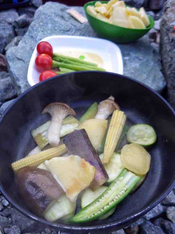 ポケポケと山々を眺めながら、チーズと野菜焼きの〝カチョカヴァッロ〟とても美味しかった。