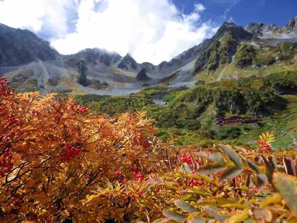 涸沢に着きました。涸沢ヒュッテのナナカマド。