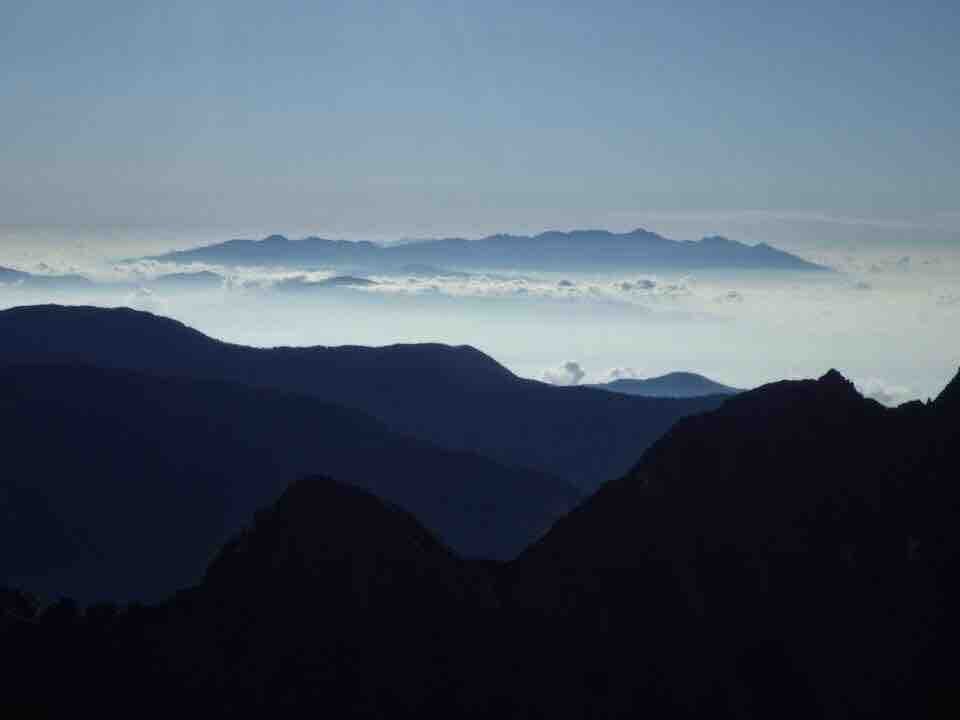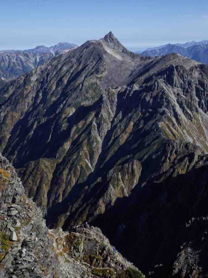 涸沢岳山頂から望む奥穂高岳とジャンダルム。