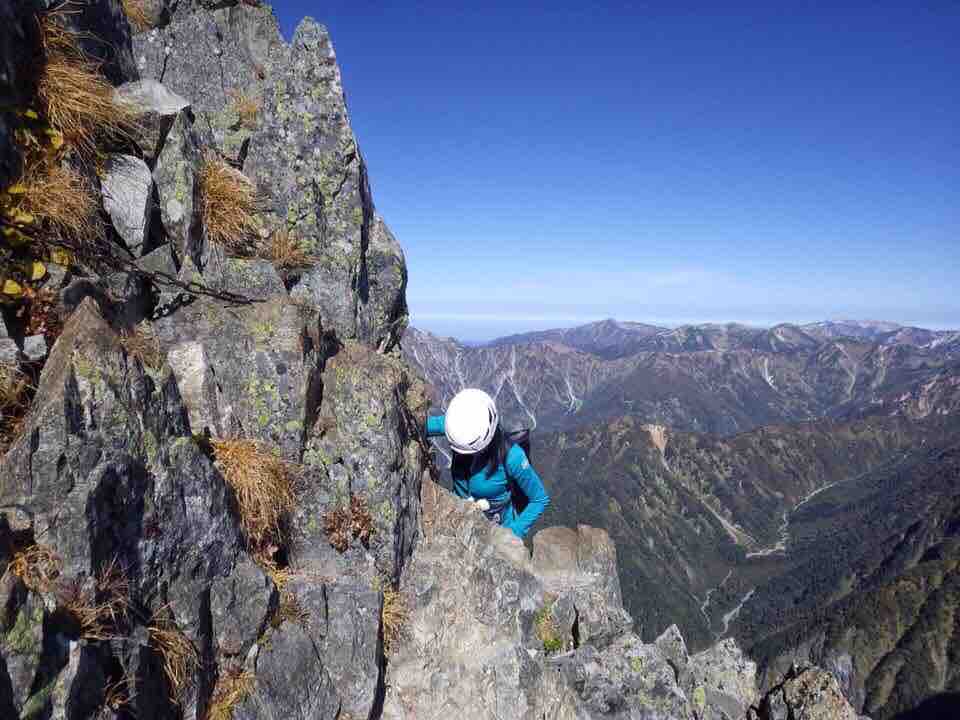 涸沢岳直下の鎖場。妹は岩場が好きで、鎖は使わない。