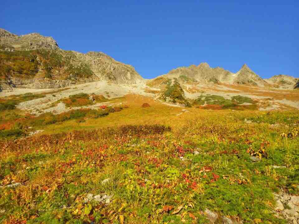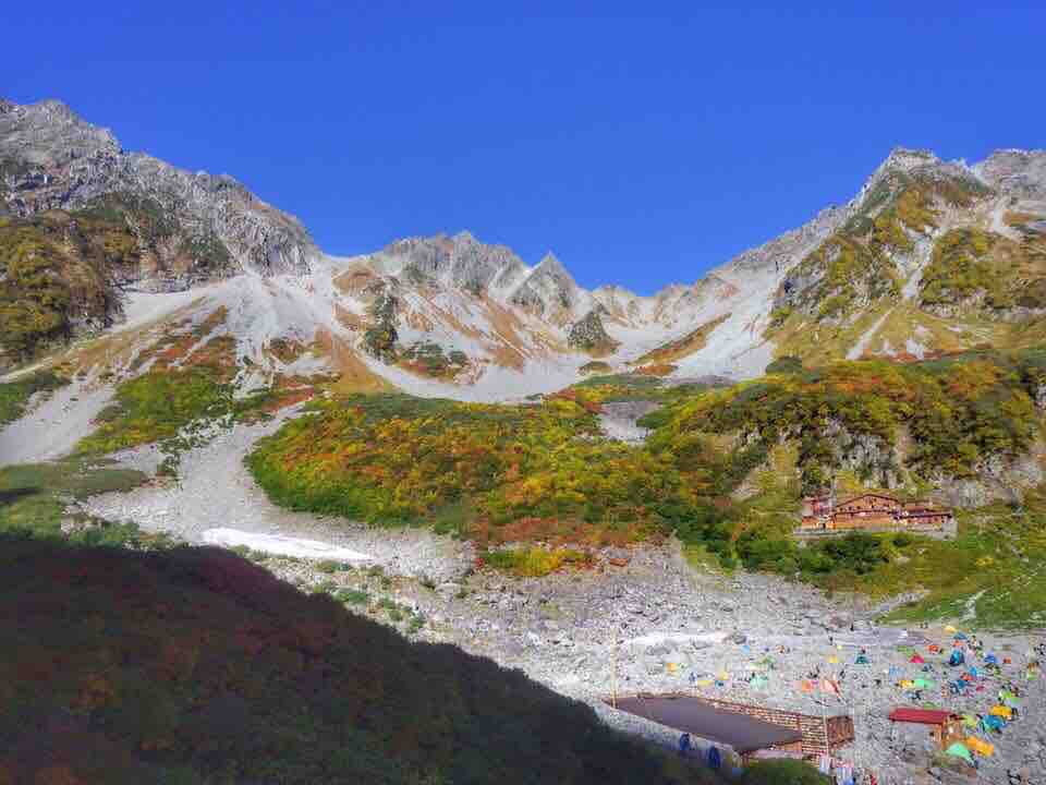 涸沢で最後に撮った写真。3日目になるとさらに紅葉は進んでいました。