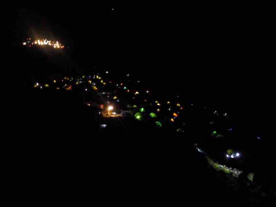 夜のテントの灯り。100張りぐらいかな…。みな静かに過ごしていました。
